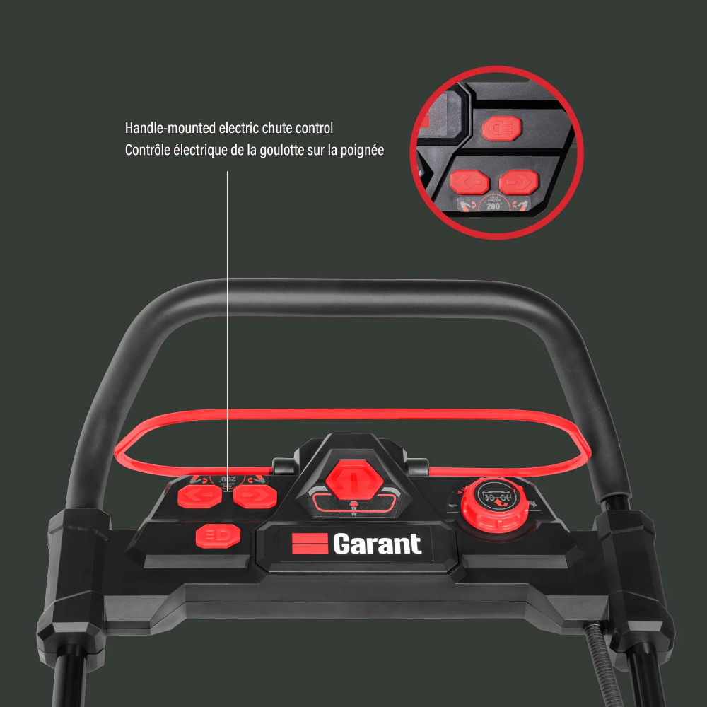 - Control where the snow goes with the electric chute adjustment located on the dashboard. Throws snow up to 40 feet with a 200° turning radius.