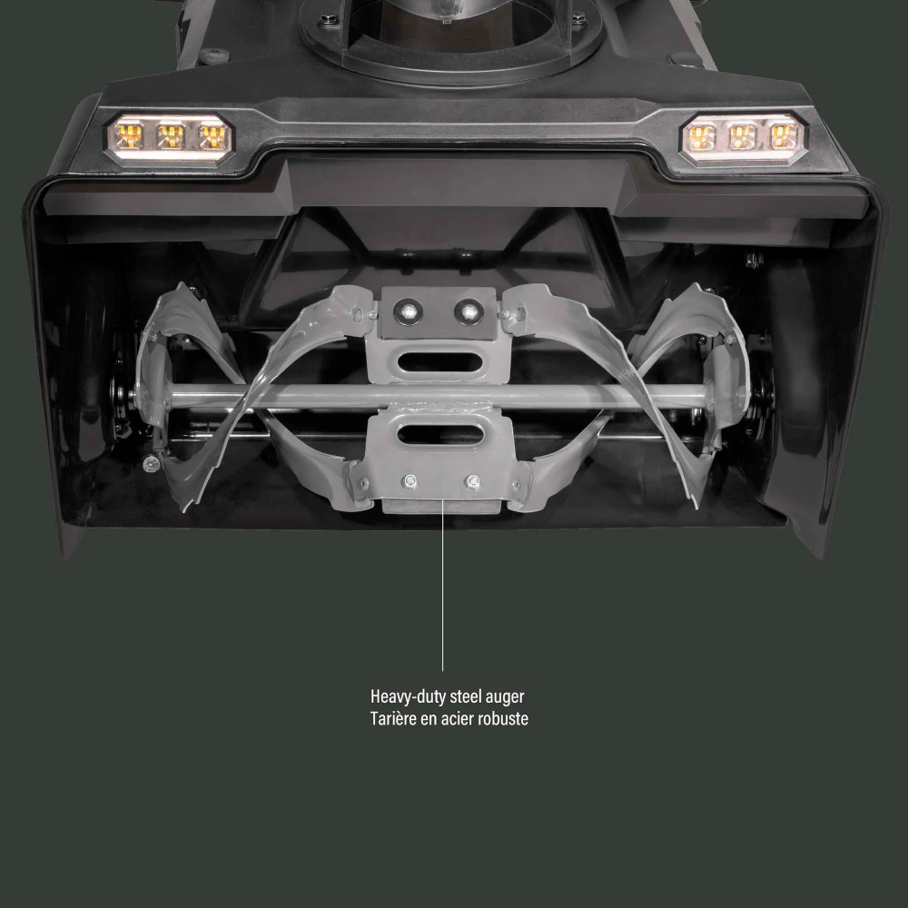 - Clear snow anytime with integrated LED headlights that improve visibility in low light, at dawn, or at dusk.
