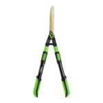 The Garant Telescopic Titanium Hedge Shears feature an 8.5″ titanium-coated steel blade for smooth, corrosion-resistant cutting and push-button extendable handles for up to 28″ reach, with a non-slip grip for comfort.