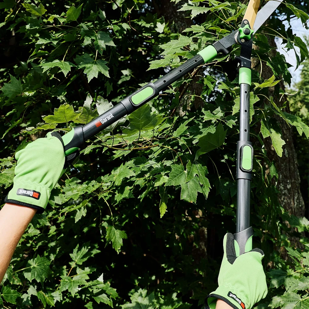 The extendable handles deliver up to a 28″ (71 cm) reach and adjust easily via a push-button mechanism, helping you reach higher sections and awkward spots without overstraining. A non-slip grip keeps handling stable and comfortable during longer trimming sessions.