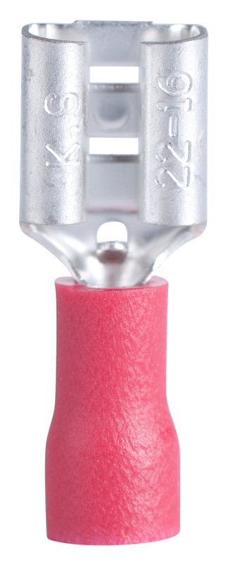 Quick and reliable crimp-type wire connections. Vinyl insulated shank with 0.250 in x 0.032 in tab. 75 deg C temperature rating.