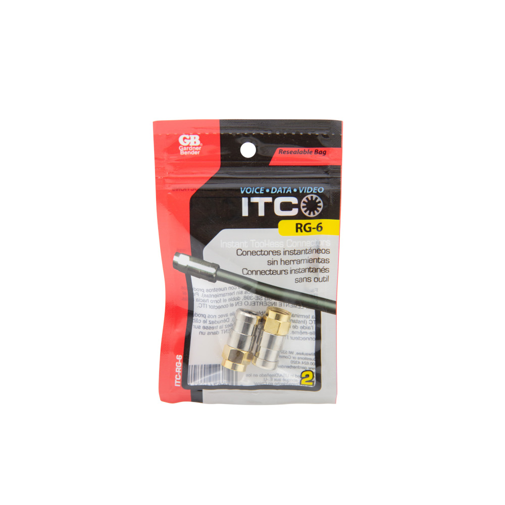 Gardner Bender ITC-RG-6 Tool-Less F-Series RG-6 Connector, 2 Pack – Gold & Silver