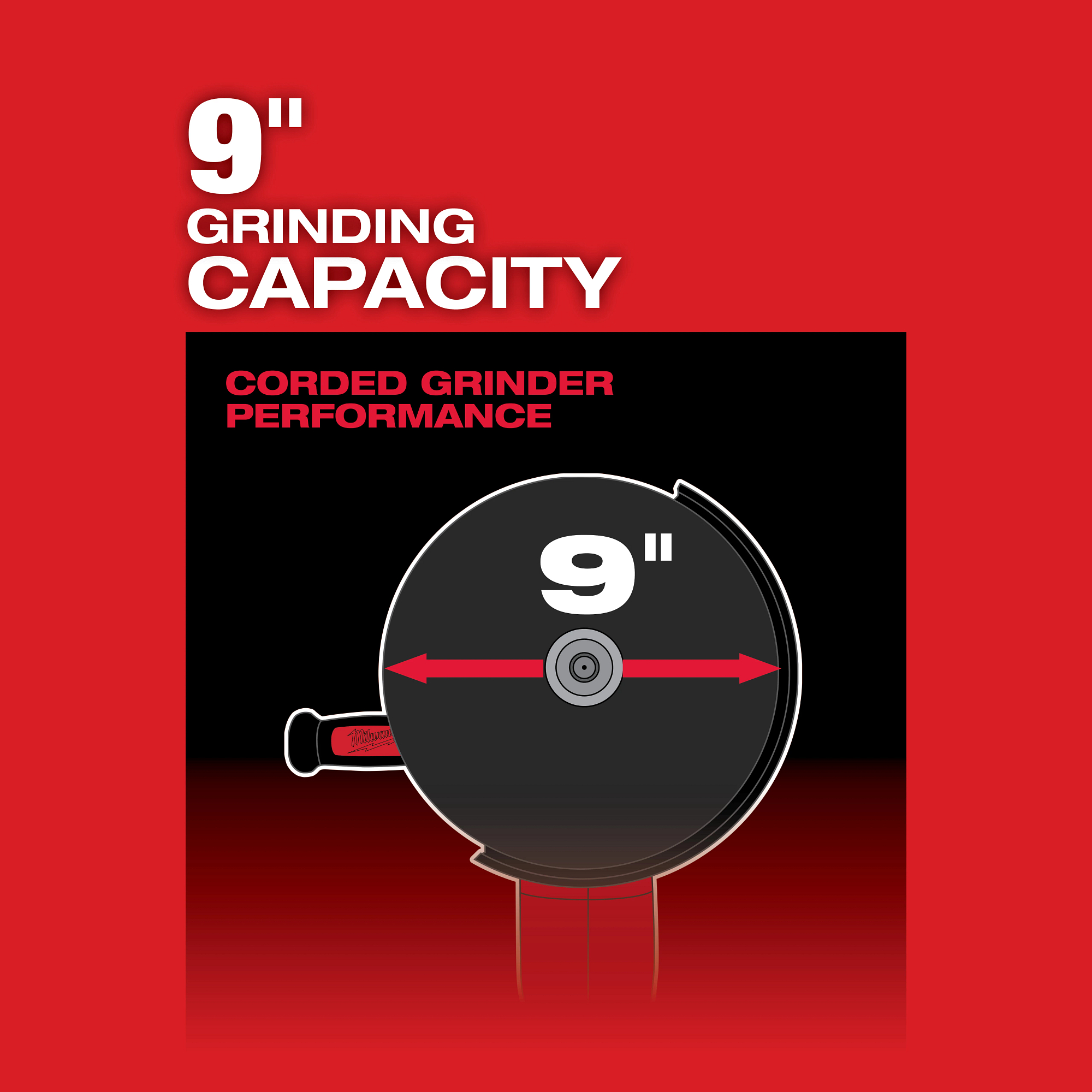 The M18 FUEL™ 7 in. / 9 in. Large angle grinder is the world’s first 18 V large angle grinder generating the power of a 15 A corded large angle grinder, is up to 2 lbs lighter, and has 9 in. grinding capacity. Providing high performance, advanced ergonomics & legendary durability, this grinder is designed to complete the toughest grinding, surface preparation, and cutting applications with any 7 in. to 9 in. accessory. The POWERSTATE™ brushless motor provides 6,600 RPM and higher speeds under load for corded grinding/cutting performance. REDLINK Plus™ intelligence ensures maximum performance and protection from overload, overheating and over discharge. The M18 REDLITHIUM HIGH OUTPUT™ HD12.0 battery (sold separately) delivers unmatched run-time in all applications. Tool-free accessory changes using the FIXTEC nut and guard adjustments mean less downtime during work.