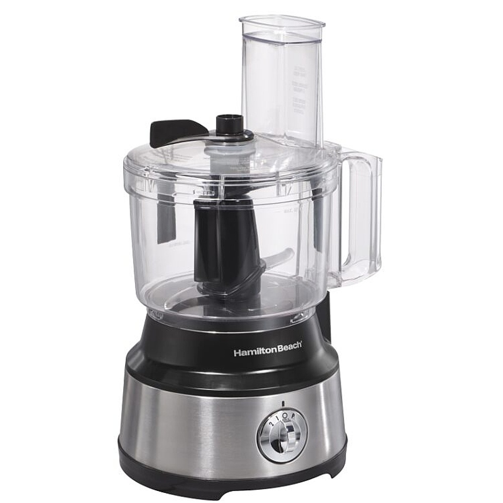 Hamilton Beach Food Processor with Bowl Scraper, Wattage Rating: 450 W, 2 Speeds, 10 Cups Bowl, Stainless Steel, Black, Dimensions: 10.25 in W x 8.43 in D x 15.47 in H
