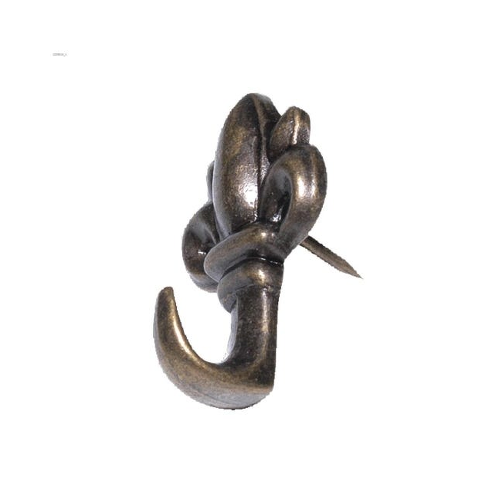 Hillman #122261 Antique Brass Fleur De Lis Head Push Pin Hanger -1/Pack