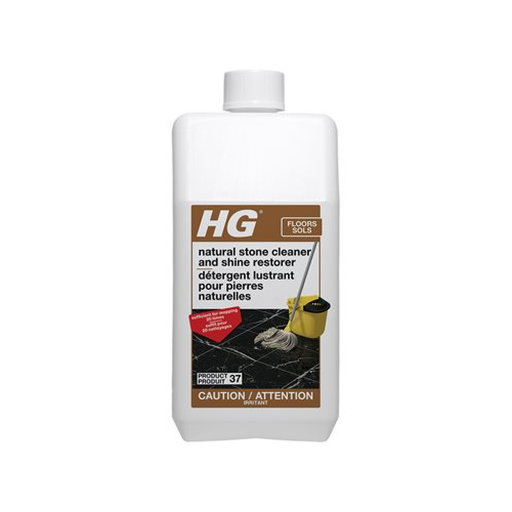 “• HG natural stone cleaner and shine restorer (product 37). • Freshly scented; concentrated tile floor mopping cleaner. • Cleans and leaves a beautiful sheen on slate. • Sufficient for 20 washes. >>HG natural stone cleaner and shine restorer is an easy no-rinse cleaner for regular cleaning of marble; slate; quartz; sandstone; and all other types of calciferous natural stone floors. Specifically for regular cleaning as well as removing dirt and scuff marks; it will also restore the natural shine to the stone. It is suitable for both untreated floors and floors treated with HG natural stone impregnating sealer and protector (product 32). 1 Litre bottle contains enough product for approximately 20 washes. Simply dissolve 50 ml (half a cup) of HG Natural Stone cleaner and shine restorer in half a bucket (5L) of lukewarm water. Dip the clean mop in the solution; then wring the mop partially out before damp mopping the surface. Regularly rinse the mop in a separate bucket of clean water before continuing cleaning. No need to rinse or dry mop the surface but leave to dry naturally.”