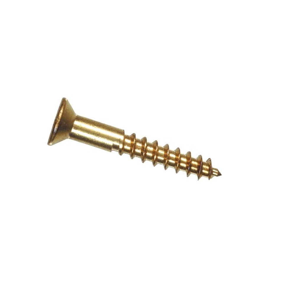 These #12 x 2-1/2” flat head wood screws, made from brass and featuring UNC threading, offer easy countersinking with their undercut head. The unthreaded portion of the shank ensures a tight fit. Each pack contains two screws, ideal for heavy-duty wood applications.
