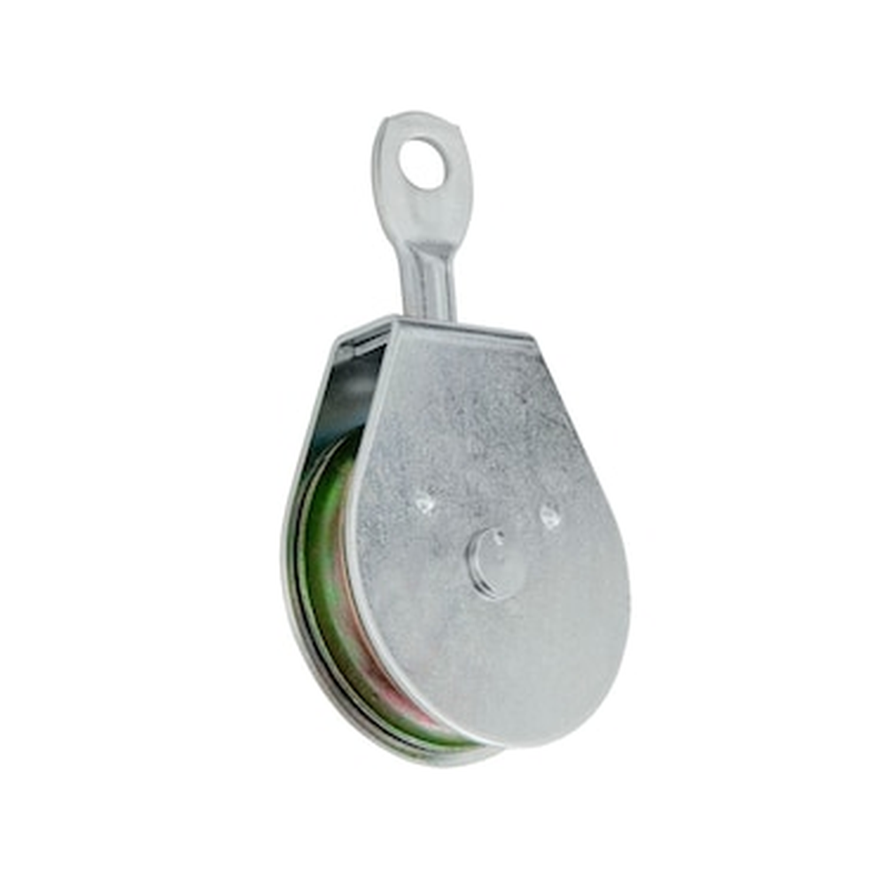 • Heavy-duty single sheave fixed eye pulley features zinc-plated steel body and uses oil impregnated bearing for offering extended durability • This swivel eye pulley with zinc diecast sheave, efficiently prevents tangling