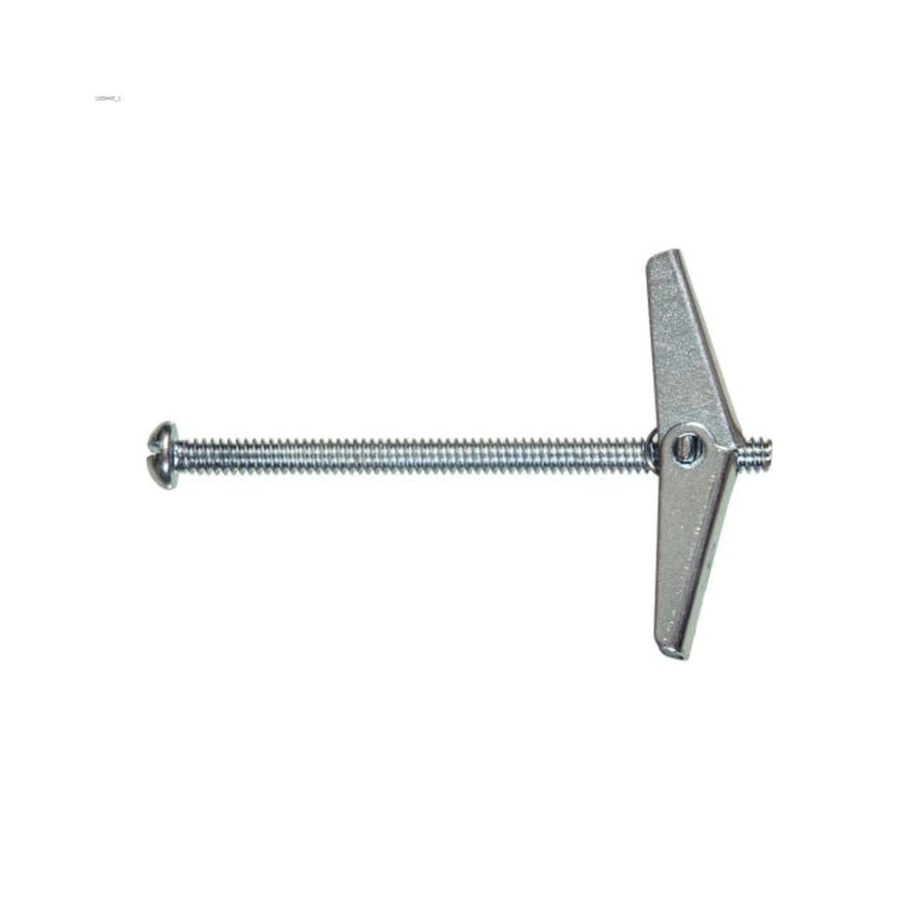 Toggle bolt anchor features spring-action wings that spreads apart behind the base material upon installation to ensure firm hold in hollow wall applications. It requires pre-drilled hole and supports up to 50 lb weight capacity. This spring wing bolt anchor is suitable for indoor or outdoor use.
