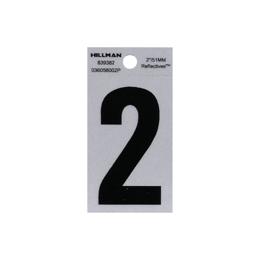 Hillman 839382 2" Reflective Adhesive Number, #2 – Black & Silver