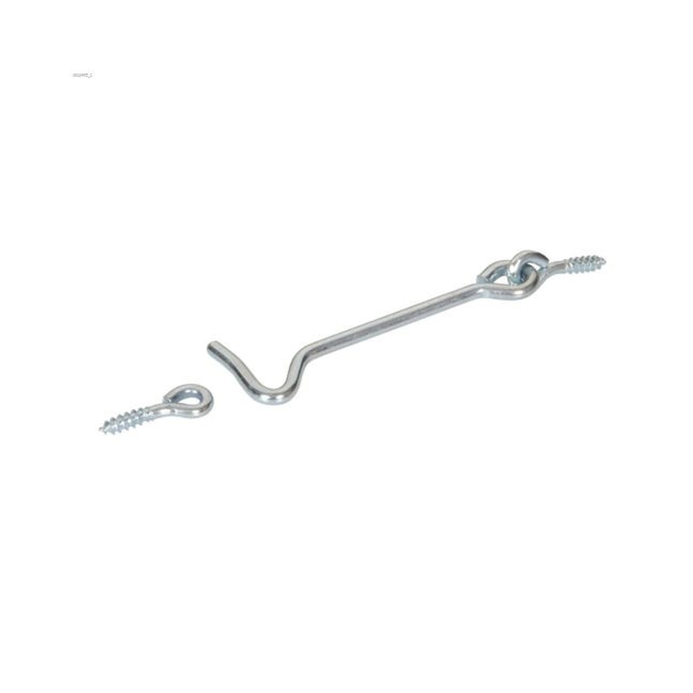 Gate hook and eye has high-strength and durable construction. It includes matching threaded eye and is perfect for light-duty closures.