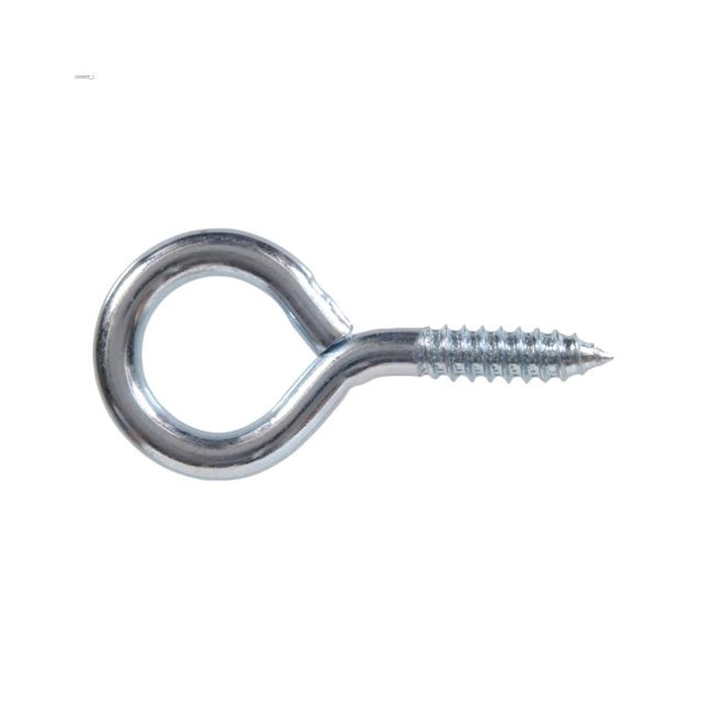 Small 53/500 in x 15/16 in eye screw features steel construction with zinc-plated finish for moderate corrosion resistance. The eye screw has loop fashioned bolt at the non-threaded end and a lag thread screw on the other machine thread on one end with a nut. The eye screw has safe working load limit of 15 lb.