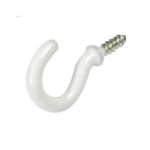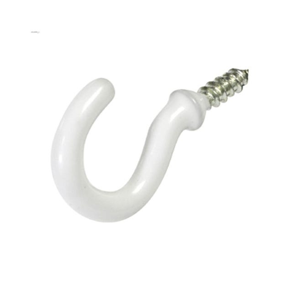 1-1/2 in Cup hook in white vinyl coated finish, has load capacity of 3 lb. This hook requires no predrilling for installation. It is ideal for light-duty applications.