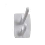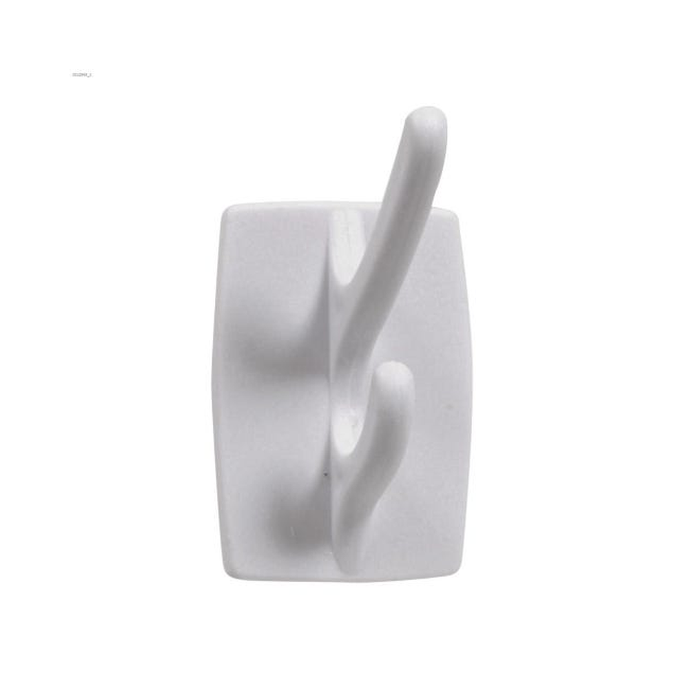 Adhesive double hook in white finish, has load capacity of 1 lb. It holds various items and delivers better space management to create extra storage.