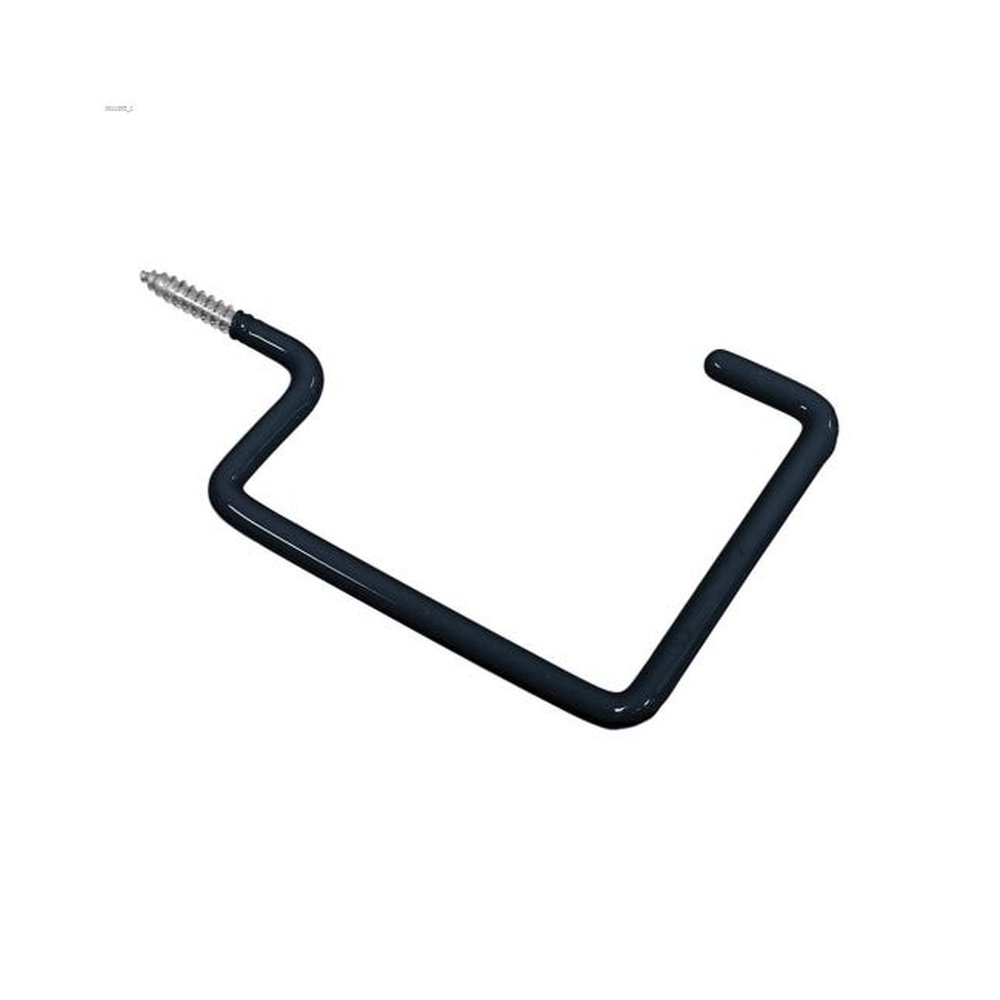 Large storage hook in black vinyl coated finish, easily fastens into wood stud for proper installation. This hook has load capacity of 50 lb. It has mar-proof coating that prevents any scratch or damage on the items. This hook requires no predrilling for installation.