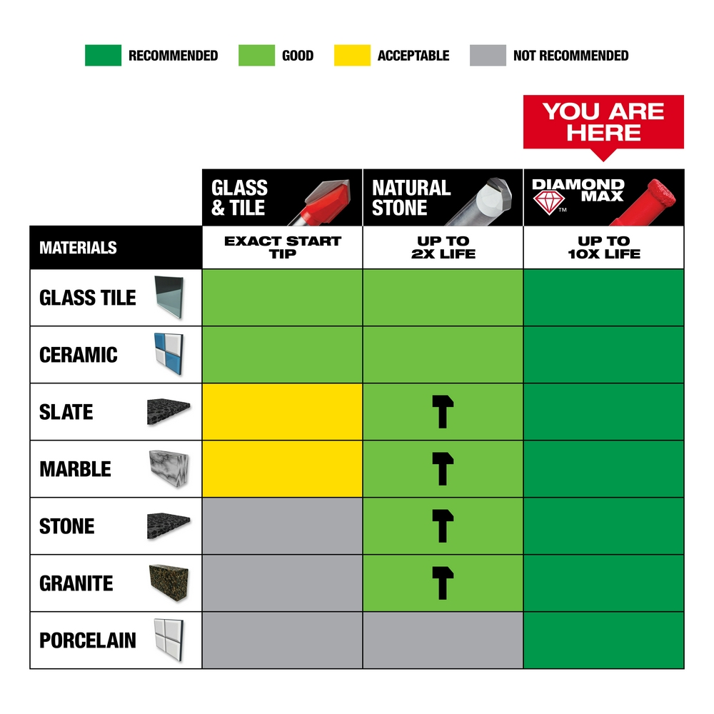 – Versatile: Ideal for cutting anchoring and clearance holes in all tile, stone and glass