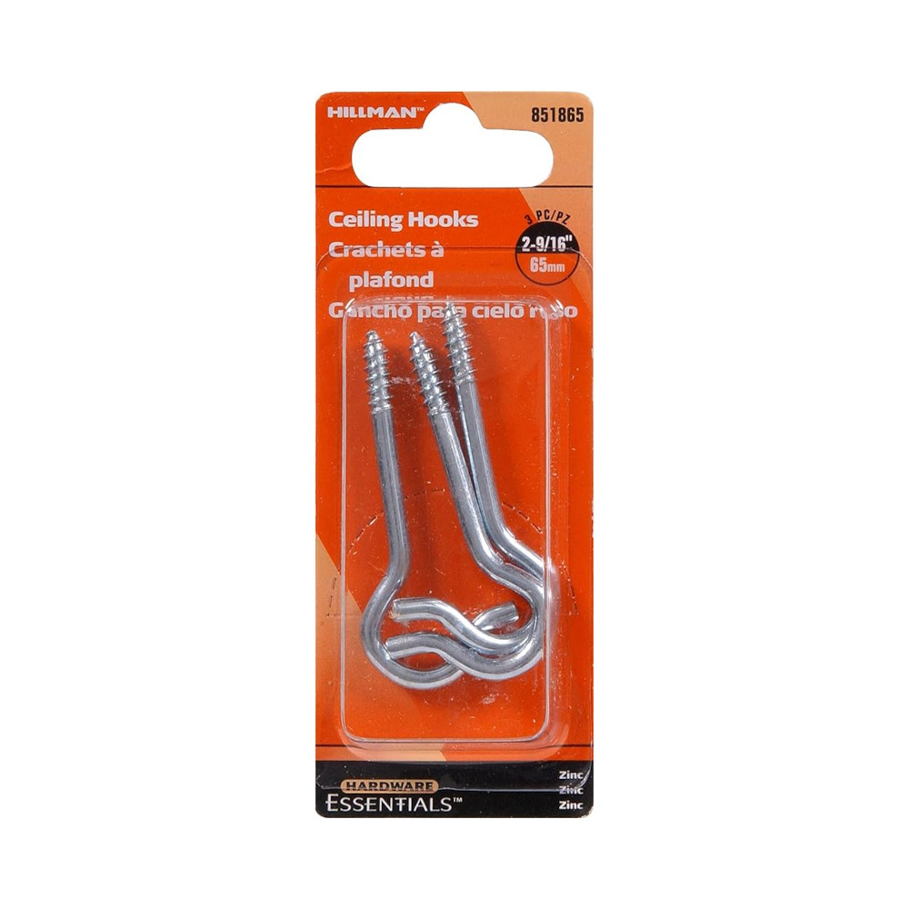 Hillman 851865 2-9/16" Ceiling Hook, 3 Pack – Zinc