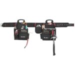 Features two large sleeves for pry bar and combination square, steel loop hammer holder and center pocket for tape measure