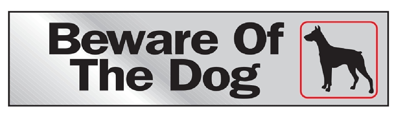 Hy-Ko Sign, Legend: Beware Of The Dog, Background Color: Silver, Vinyl, Self-Adhesive Mounting, Dimensions: 2 x 8 in