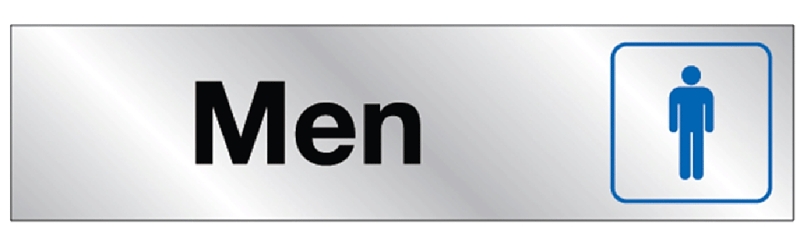 Hy-Ko Sign, Legend: Men, Background Color: Silver, Vinyl, Self-Adhesive Mounting, Dimensions: 2 x 8 in