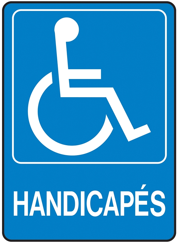 Hy-Ko Sign, Legend: HANDICAPES, Legend Color: White, Background Color: Blue, Plastic, Dimensions: 7 in L x 5 in W