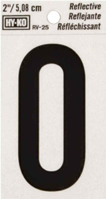 Hy-Ko RV-25/0 Reflective Sign, Character: 0, 2 in H Character, Black Character, Silver Background, Vinyl Sells in Quantity of 10