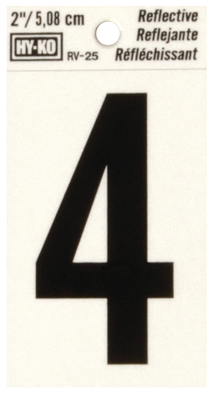 Hy-Ko RV-25/4 Reflective Sign, Character: 4, 2 in H Character, Black Character, Silver Background, Vinyl Sells in Quantity of 10