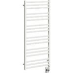 The Tuzio Avento 19.5″x47.5″ towel warmer offers a tall, narrow profile ideal for smaller wall spaces where vertical coverage is preferred. Its contemporary design blends clean lines with everyday functionality, warming towels efficiently while complementing modern bathrooms with subtle elegance.