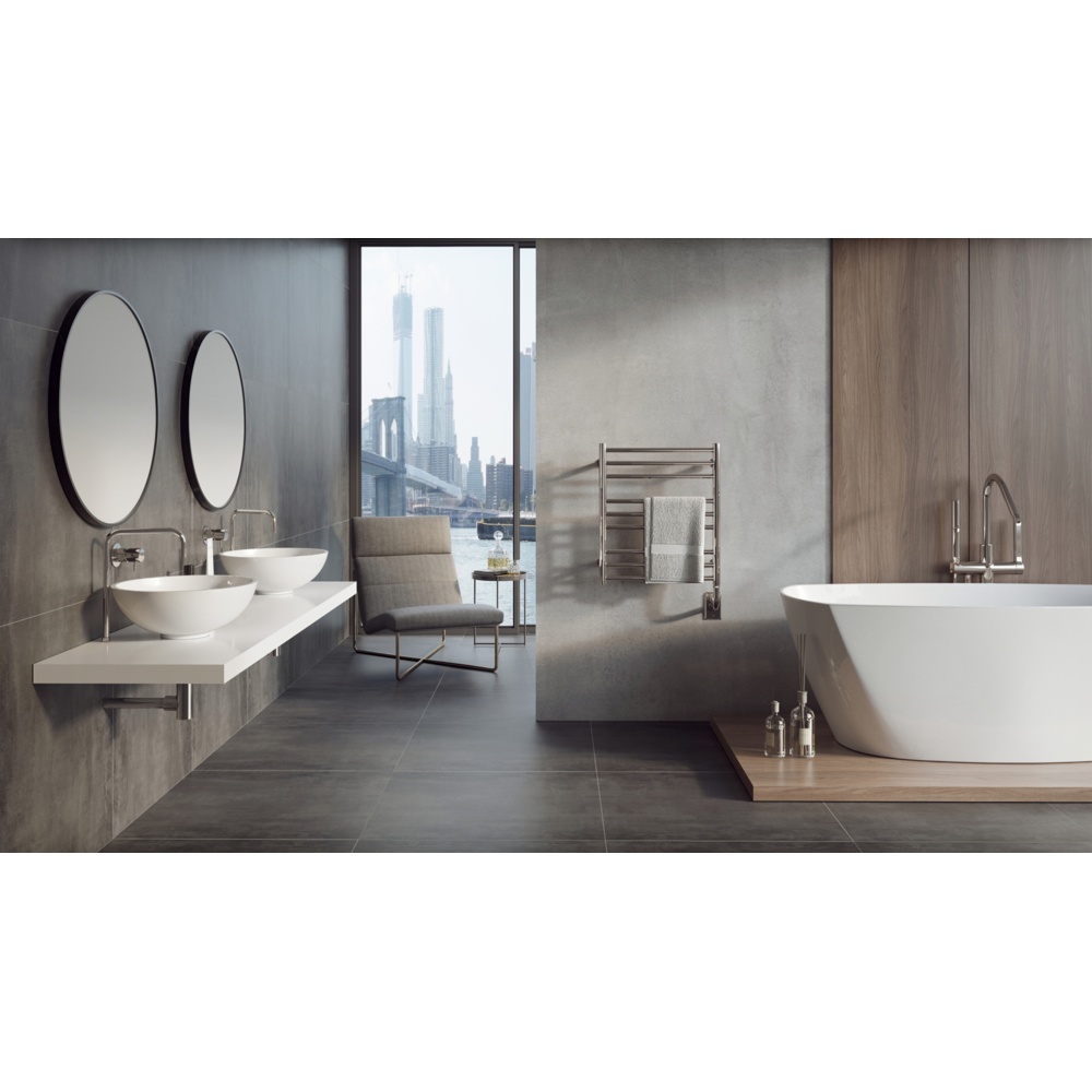 Elevate your bathroom with the minimalist elegance of the Tuzio Sorano 19.5″ x 23″ Towel Warmer. Featuring a sleek round-bar design and generous spacing between bars, Sorano is perfect for larger towels and adds a subtle, effortless touch to your space.