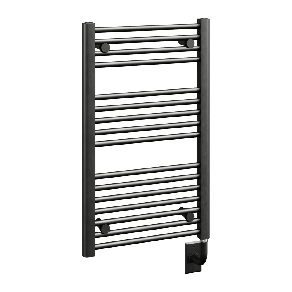Available in three premium finishes—Chrome, Gloss White, and Matte Black—to complement your décor. Choose from electric hardwired, plug-in, or hydronic configurations to suit your installation preferences. The electric models include a programmable control for added convenience.