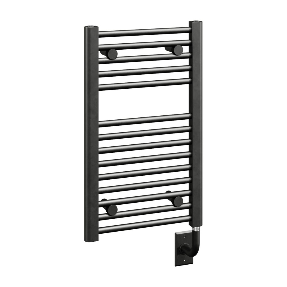 Available in three premium finishes—Chrome, Gloss White, and Matte Black—to complement your décor. Choose from electric hardwired, plug-in, or hydronic configurations to suit your installation preferences. The electric models include a programmable control for added convenience.