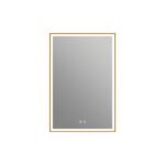 The Eden LED Mirror offers a contemporary design with both front and back acrylic diffused LED lighting, providing balanced illumination suitable for various settings. Its anodized aluminum frame is available in matte black, brushed gold, or brushed bronze finishes, complementing a range of interior styles.