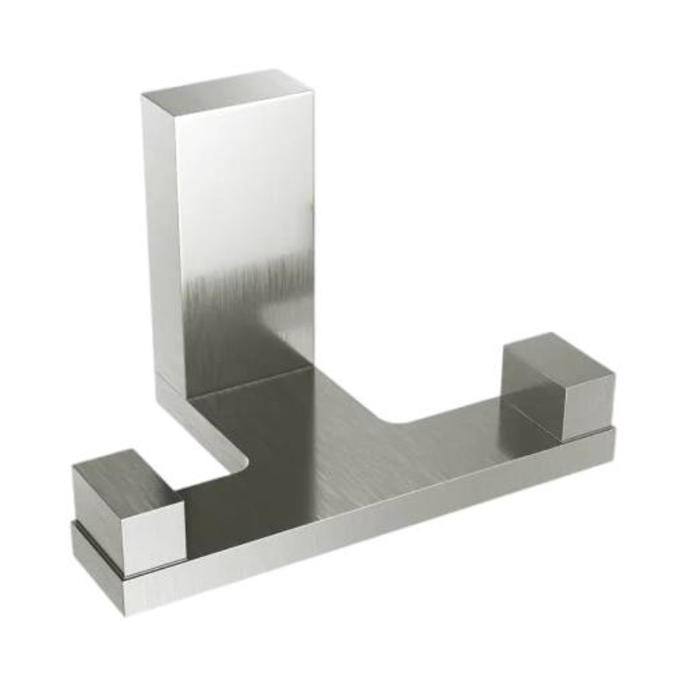 The Erupt double towel hook offers a minimalist yet striking design, with dual prongs for added convenience. Its sharp, fluid lines bring a modern edge to any space. Available in chrome, brushed nickel, matte black, brushed gold dark, and brushed gold light.
