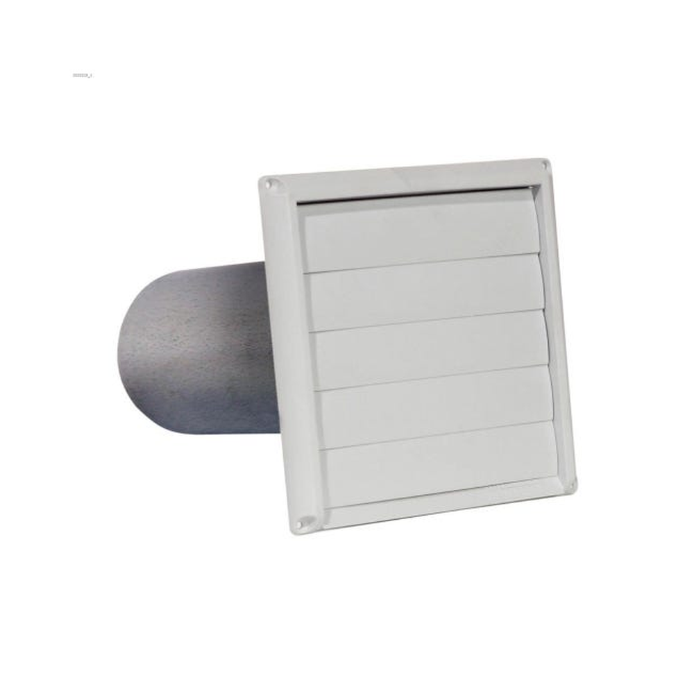 6 in Louvered vent hood in white colour, features plastic/aluminum construction. This vent hood is used for venting applications. This easy to install vent hood comes with galvanized mounting pipe. **Discontinued