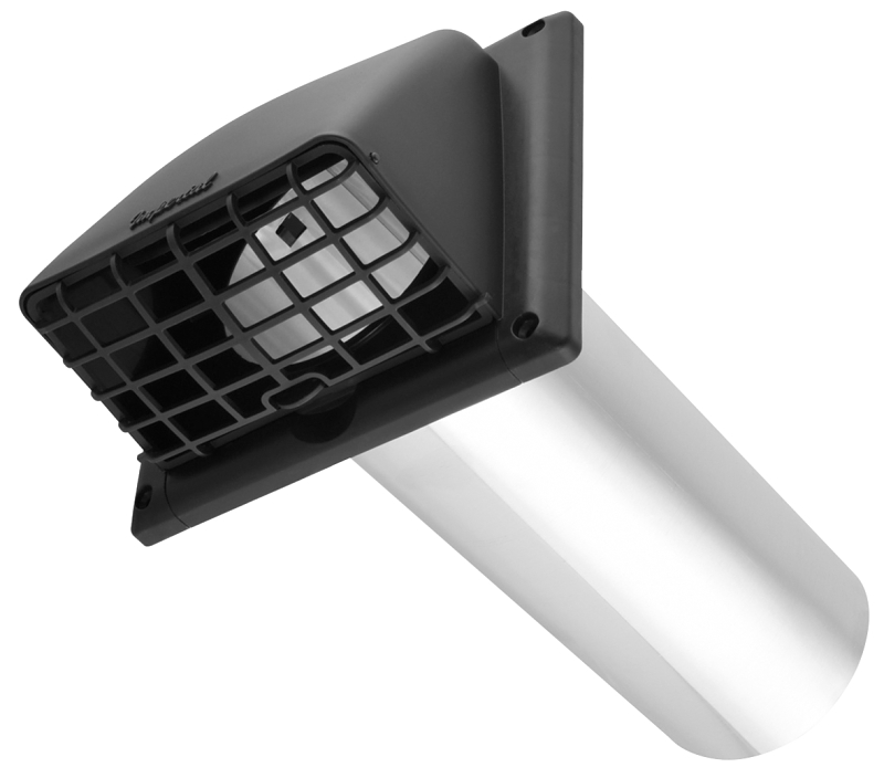 Imperial Preferred Vent Hood with Guard, Duct Size: 4 in, Hood Material: Plastic, Hood Color: Black, Hood Width: 7.1 in, Hood Height: 6.3 in, Hood Depth: 3.8 in, Overall Dimensions: 14.2 in L x 7.1 in W x 6.3 in H