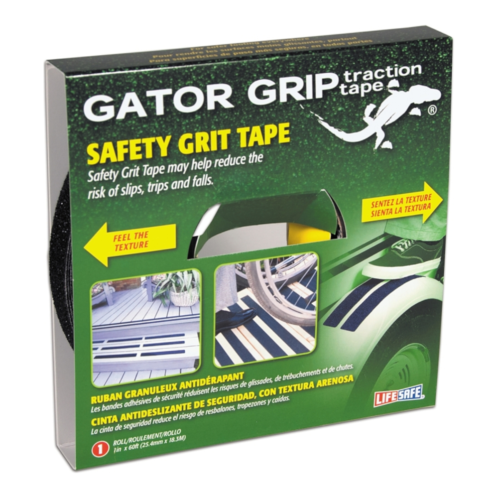 Gator Grip® Traction tape is our premium brand anti-slip system to help ensure an OSHA compliant workplace. Constructed from a thick base layer impregnated with an aggressive 60 grit mineral abrasive compound. The backing has an aggressive acrylic adhesive system for longevity that will form a strong, waterproof bond to most any clean, dry surface while will still being temporarily repositionable during the application process. Gator Grip® is a great choice for both indoor and outdoor environments offering our highest wear resistance and weatherability. Recommended product for long term and OEM applications. Gator Grip® Traction tape is certified by the National Flooring Safety Institute 101-A “High- Traction” and meets or exceeds OSHA 1910.24, 1910.26 and ANSI B101.1. Gator Grip® offers excellent chemical and oil resistance for a wide variety of applications.