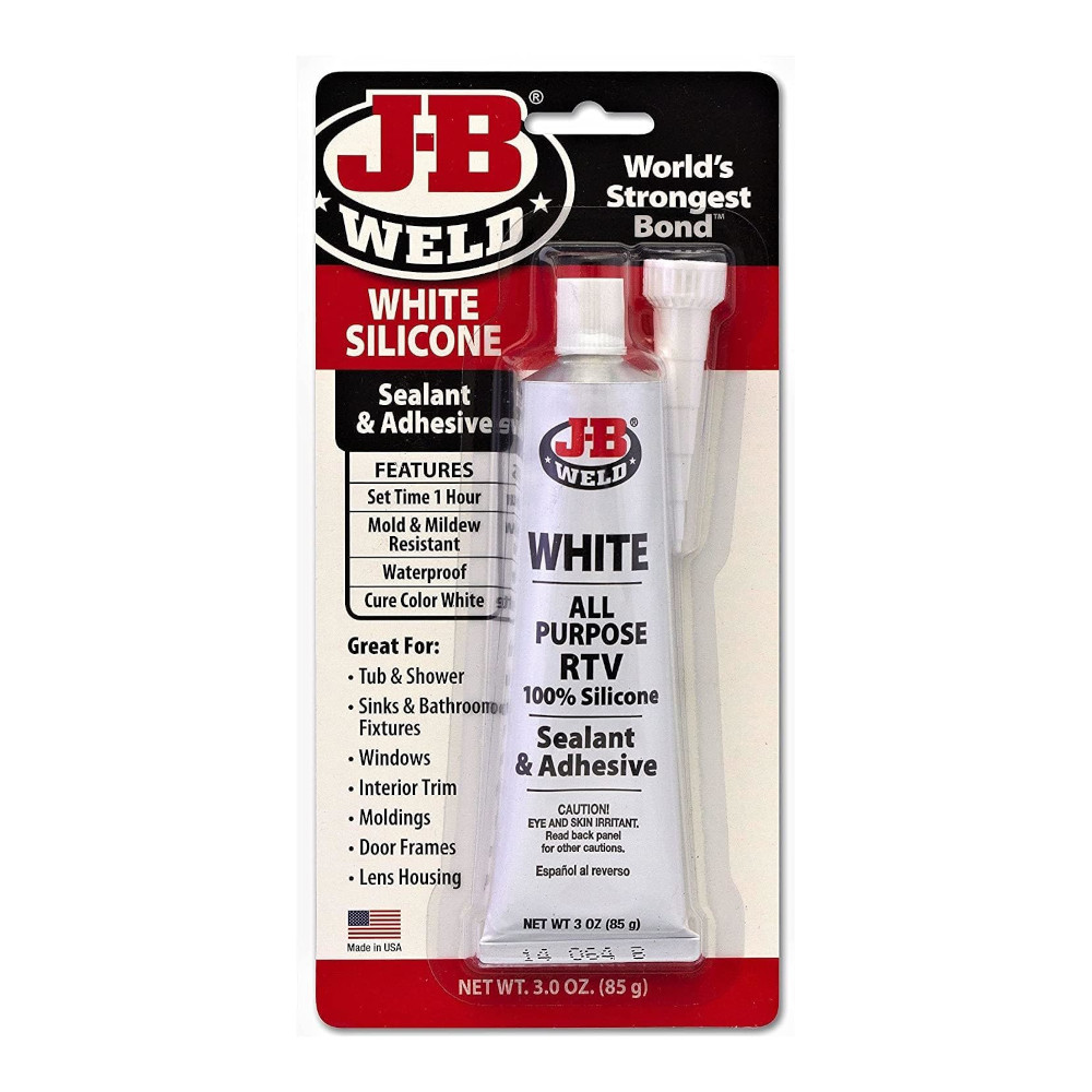 J-B Weld® white silicone sealant and adhesive is a general-purpose sealant adhesive RTV (room temperature vulcanized) silicone designed for use in household or mechanical assembly applications. Upon curing, which occurs when the product is exposed to the moisture in air, the silicone forms a tough, waterproof, mildew and mold-resistant seal on most surfaces. It will not shrink or crack, resists weathering, is sensor safe and is great for many household and automotive applications.