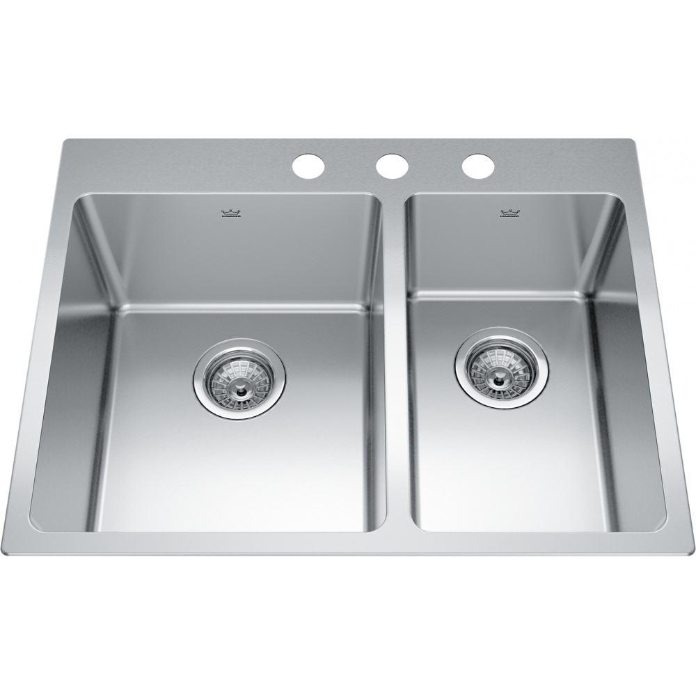The Brookmore Collection seamlessly blends modern design and exquisite craftmanship with a satin finish that matches any kitchen interior. This drop-in sink is designed for easy installation and classic functionality. Its self-rimming edge rests neatly on the countertop surface, making it a practical choice for a wide range of kitchen or utility spaces. Ideal for renovations or replacements, this top-mount sink offers dependable performance with a straightforward, no-fuss design.