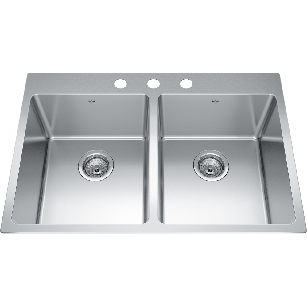 The Brookmore Collection seamlessly blends modern design and exquisite craftmanship with a satin finish that matches any kitchen interior. This drop-in sink is designed for easy installation and classic functionality. Its self-rimming edge rests neatly on the countertop surface, making it a practical choice for a wide range of kitchen or utility spaces. Ideal for renovations or replacements, this top-mount sink offers dependable performance with a straightforward, no-fuss design.