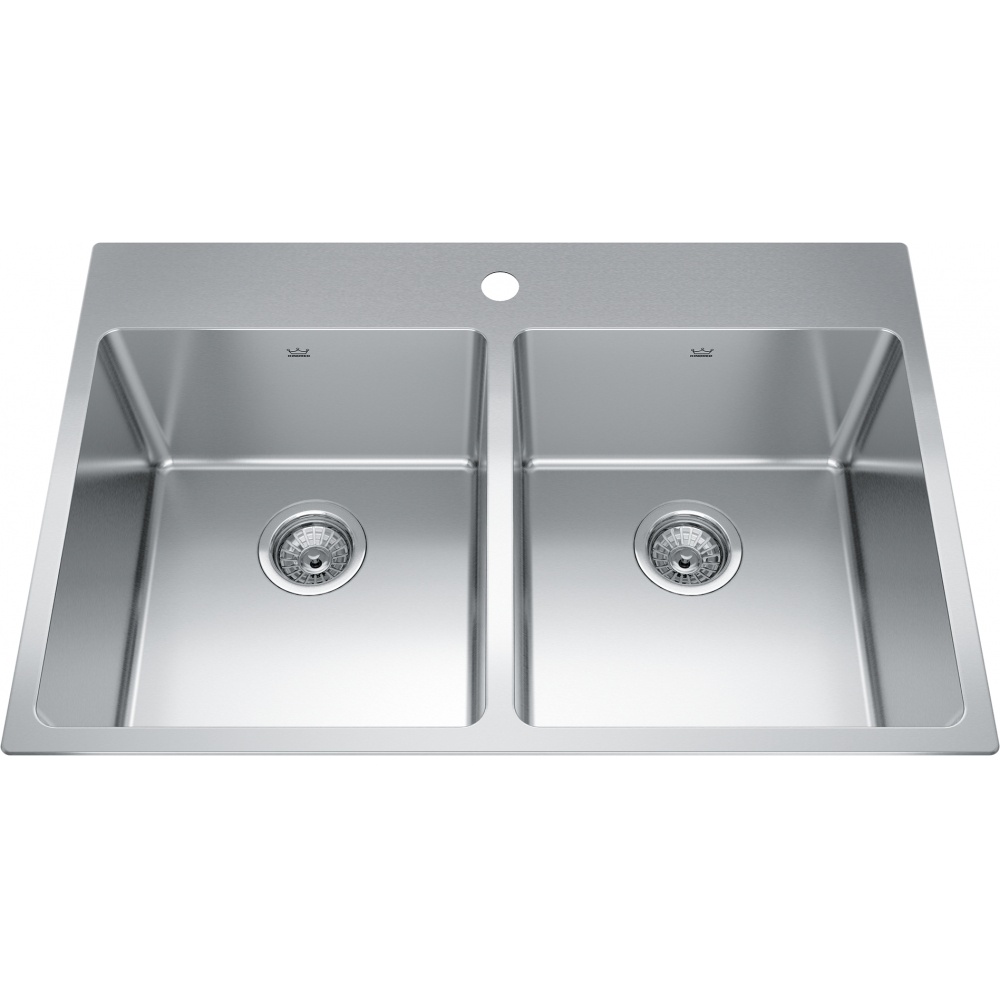 The Brookmore Collection seamlessly blends modern design and exquisite craftmanship with a satin finish that matches any kitchen interior. This drop-in sink is designed for easy installation and classic functionality. Its self-rimming edge rests neatly on the countertop surface, making it a practical choice for a wide range of kitchen or utility spaces. Ideal for renovations or replacements, this top-mount sink offers dependable performance with a straightforward, no-fuss design.