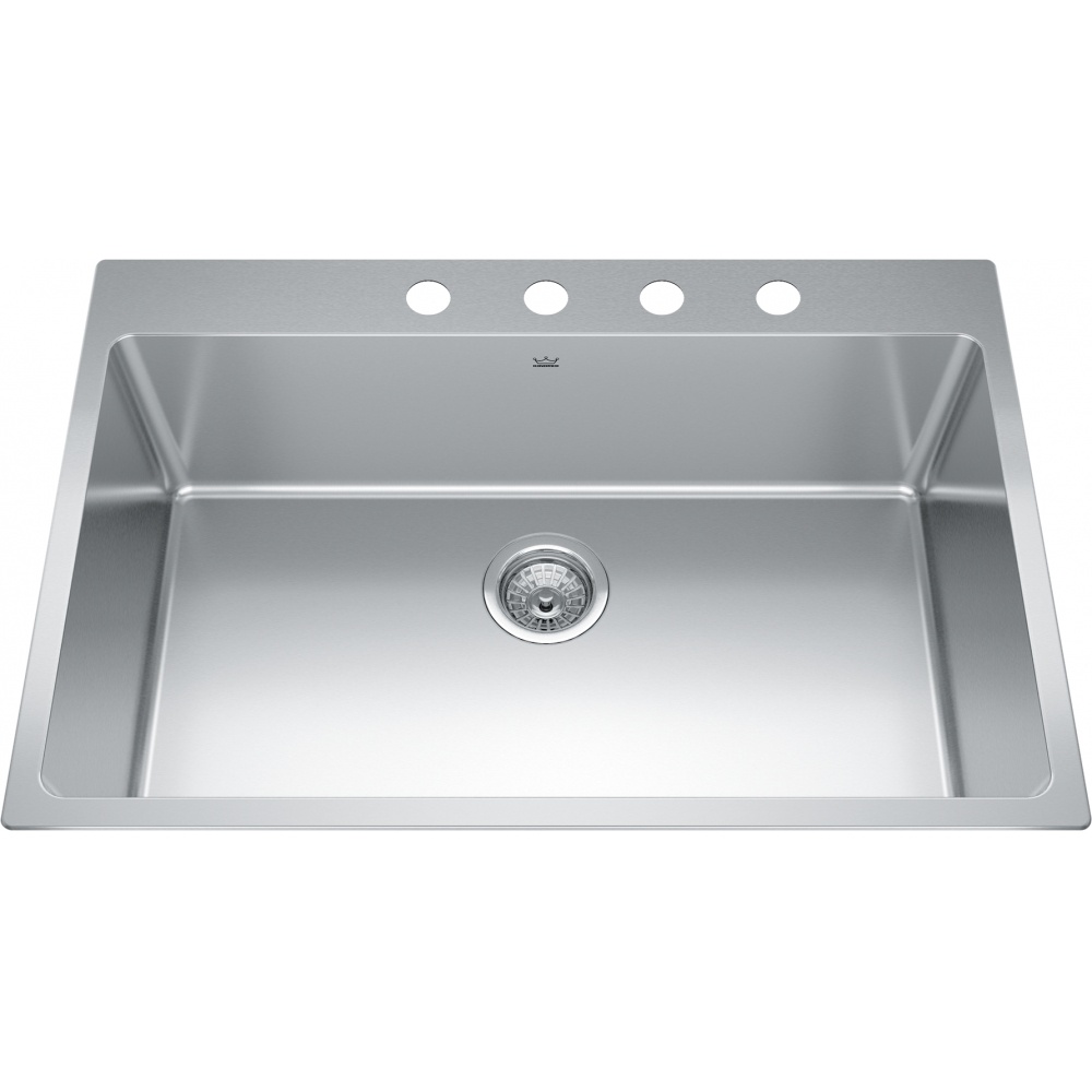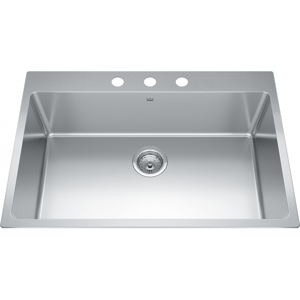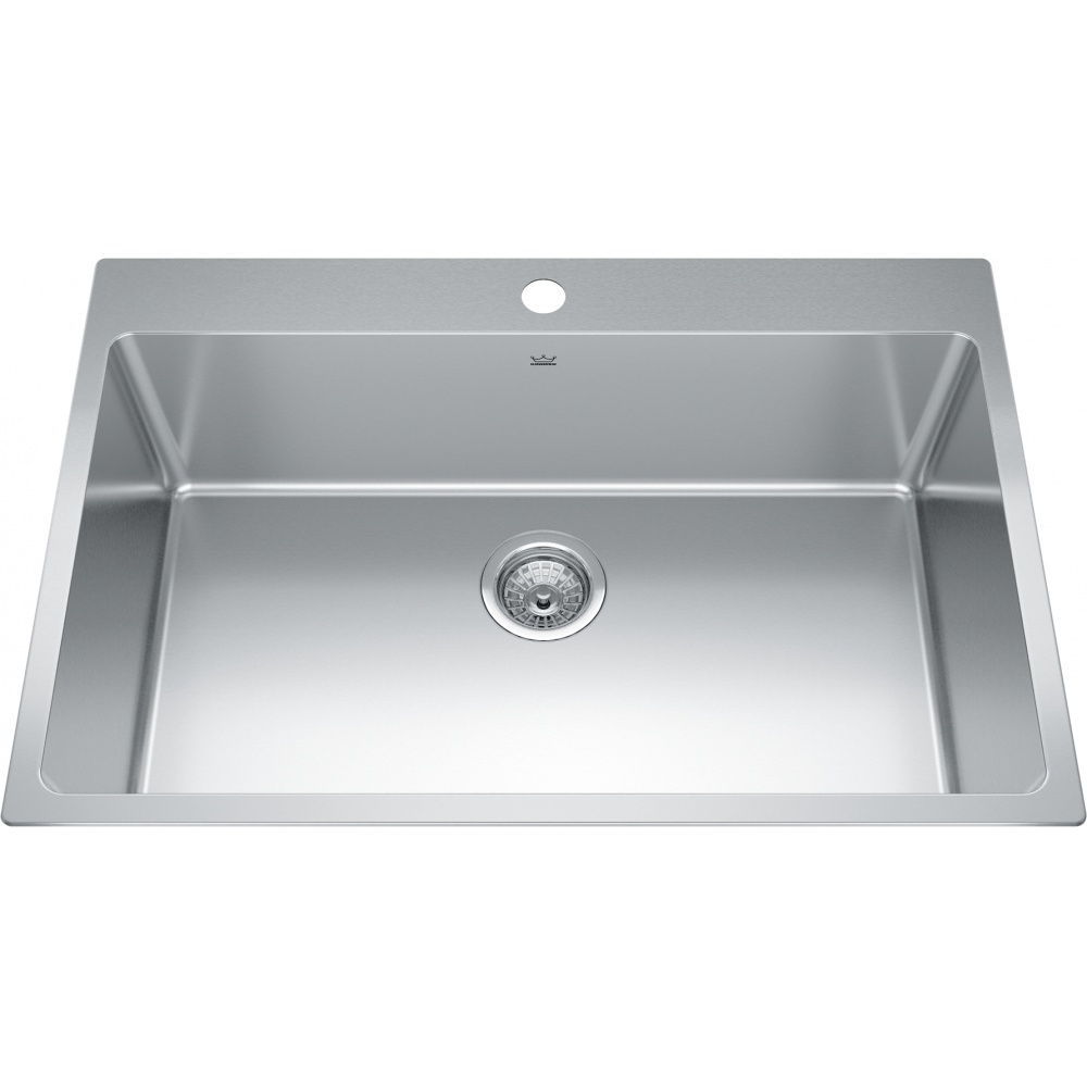 The Brookmore Collection seamlessly blends modern design and exquisite craftmanship with a satin finish that matches any kitchen interior. This drop-in sink is designed for easy installation and classic functionality. Its self-rimming edge rests neatly on the countertop surface, making it a practical choice for a wide range of kitchen or utility spaces. Ideal for renovations or replacements, this top-mount sink offers dependable performance with a straightforward, no-fuss design.