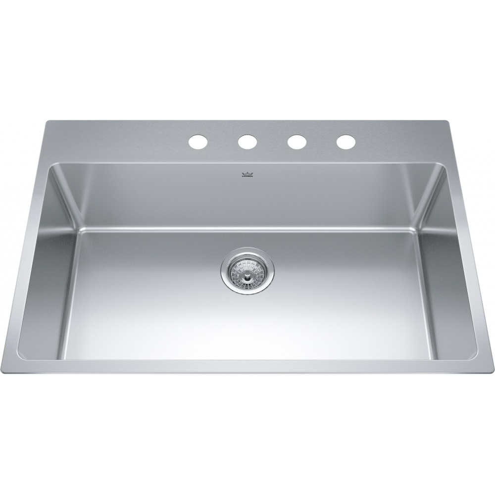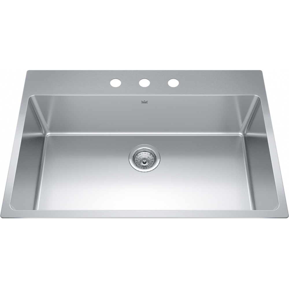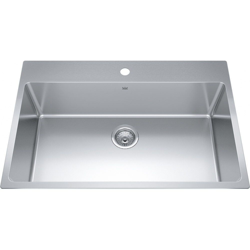 The Brookmore Collection seamlessly blends modern design and exquisite craftmanship with a satin finish that matches any kitchen interior. This drop-in sink is designed for easy installation and classic functionality. Its self-rimming edge rests neatly on the countertop surface, making it a practical choice for a wide range of kitchen or utility spaces. Ideal for renovations or replacements, this top-mount sink offers dependable performance with a straightforward, no-fuss design.
