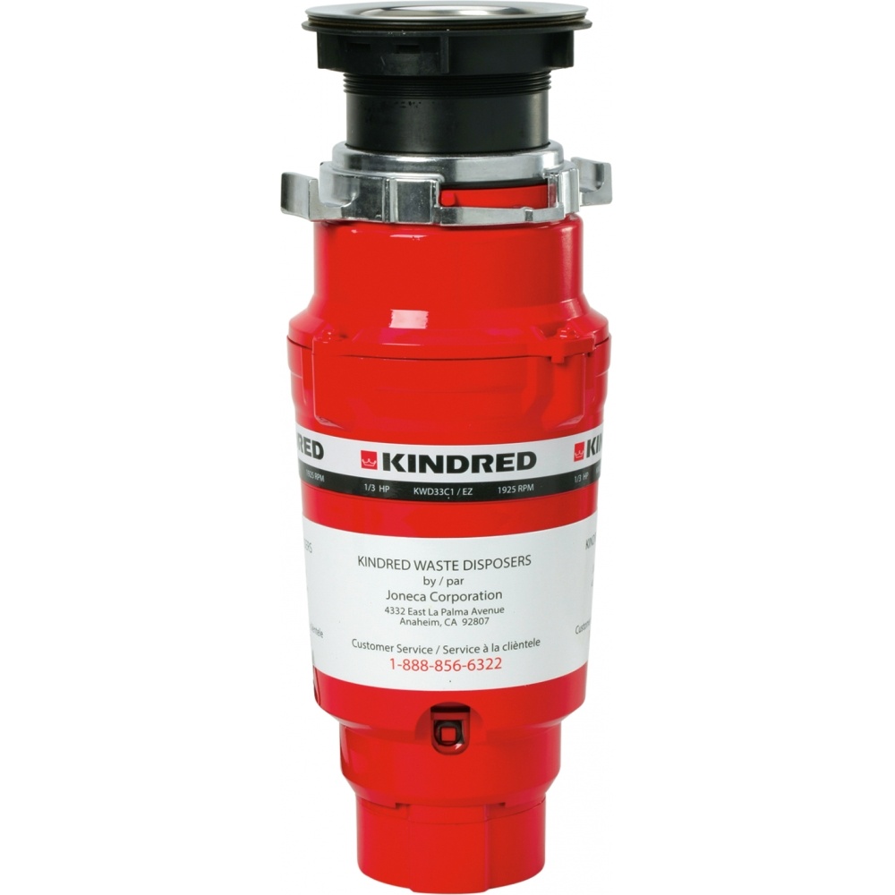 Kindred 1/3 Horse Power Continuous Feed Condo Sized Food Waste Disposer. A Kindred food waste disposer simplifies cleanup before and after a meal and decreases the amount of trash you take to the curb – less mess all the way around. This Kindred continuous feed kitchen sink waste disposer features a 1/3 Horsepower motor with 1925 r.p.m that can grind waste scraps instantly using less water and electricity. The Master Torque permanent magnet DC motor reduces jams for lasting service. The Bio Shield antimicrobial agents are permanently molded into the disposer to eliminate bacteria caused odors. Kindred waste disposals are safe for use with septic tanks that are sized for your home. The EZ mount installation system simplifies disposal installation – No snap ring, no custom tools, and no screws to tighten!
