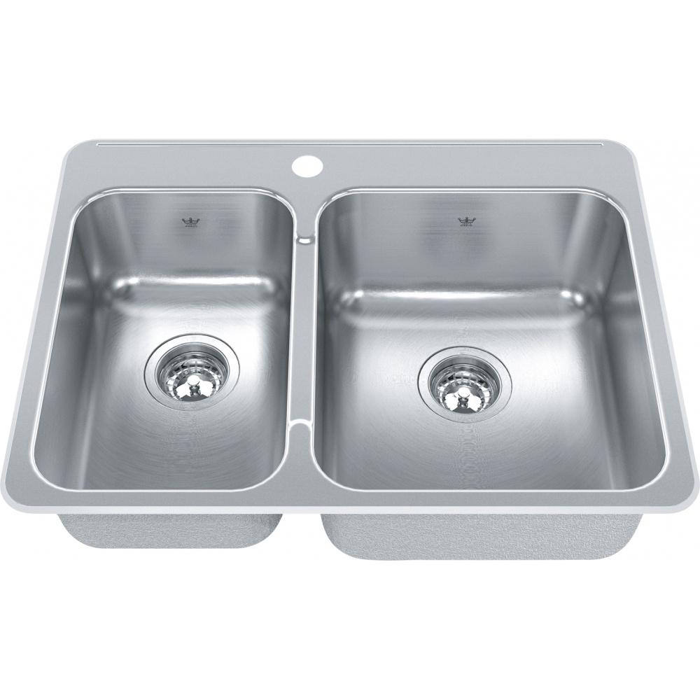 The Steel Queen Collection boasts innovative design details, fine-tuned since its establishment in 1954. This drop-in sink is designed for easy installation and classic functionality. Its self-rimming edge rests neatly on the countertop surface, making it a practical choice for a wide range of kitchen or utility spaces. Ideal for renovations or replacements, this top-mount sink offers dependable performance with a straightforward, no-fuss design.