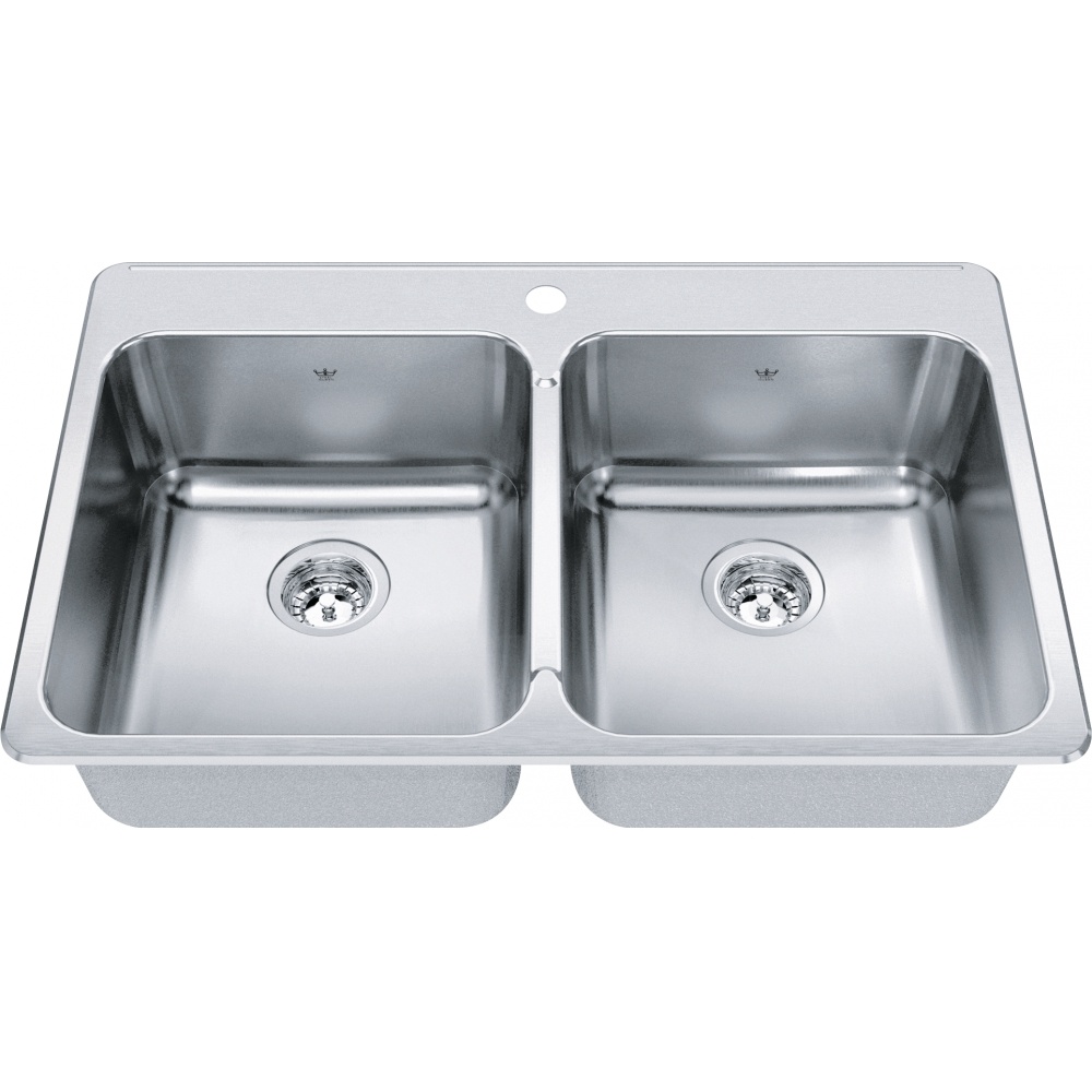 The Steel Queen Collection boasts innovative design details, fine-tuned since its establishment in 1954. This drop-in sink is designed for easy installation and classic functionality. Its self-rimming edge rests neatly on the countertop surface, making it a practical choice for a wide range of kitchen or utility spaces. Ideal for renovations or replacements, this top-mount sink offers dependable performance with a straightforward, no-fuss design.