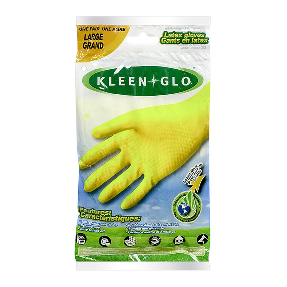 Kleen Glo 11372 Household Rubber Latex Gloves, Large – Yellow