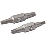 The Klein Tools #1 and #2 Robertson Square Double-Ended Replacement Bits come in a pack of 2. These bits are designed for use with Robertson (square) screws, featuring a double-ended design with #1 and #2 sizes. They are compatible with various Klein Tools screwdrivers and other tools that accept 1/4″ hex shank bits. Ideal for electrical and general construction applications, these replacement bits provide convenience and versatility when working with square-drive fasteners.