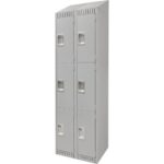 Ships knocked down, ready to assemble with nuts and bolts included, 16-gauge frames, 24-gauge body and shelves, Double pan construction doors, 20-gauge outer and 24-gauge inner pans, Stainless steel recessed padlock handles, Magnetic latch ensures door is properly fastened when closed, Three zinc-plated coat hooks and one shelf included with single and double tier lockers, Durable powder-coated grey paint finish, Number plates available separately