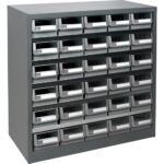 Drawer stoppers allow for full extension without risk of spilling, Grey enamel finish, Heavy-duty ABS grey drawers, Heavy-duty steel shelves provide extra durability, Housed in all-welded galvanised steel cabinet, I.D. card with clear plastic shield and divider included with every drawer, New design allows 98% use of drawer space to store larger tools or materials