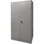 Designed for easy assembly, One-piece base serves as additional shelf, Locking handle for added security, Ships knocked down
